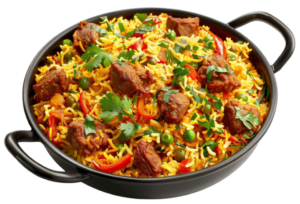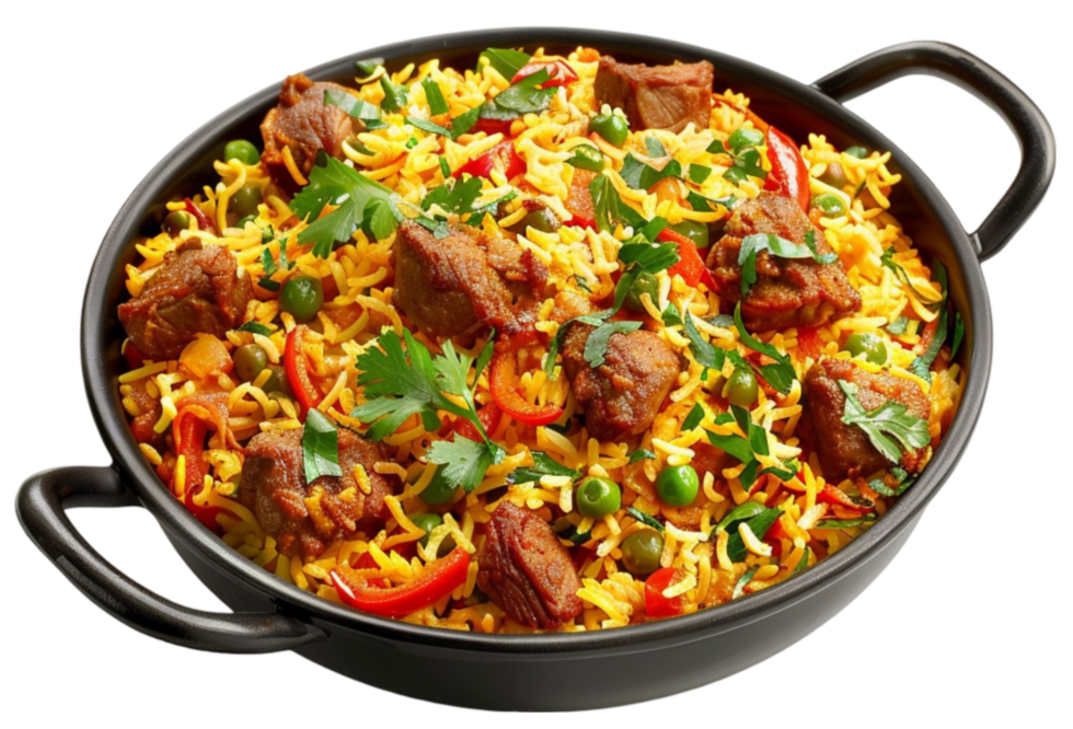 FRAGRANT BASMATI RICE COOKED WITH LAMB CURRY AND INDIAN SPICES